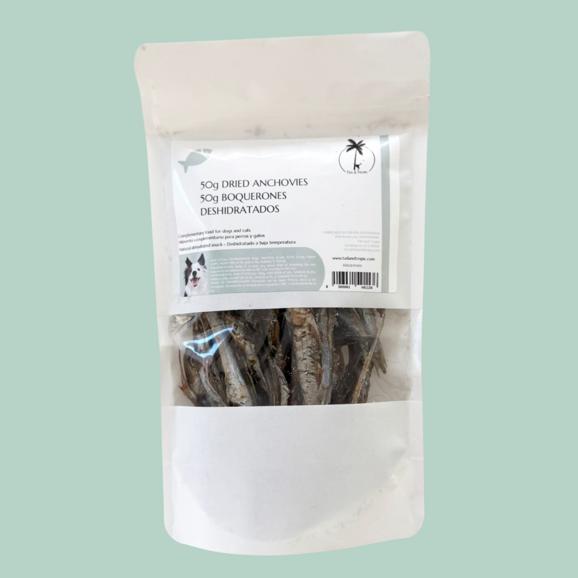 50g DRIED ANCHOVIES - Dehydrated natural treat for dogs and cats