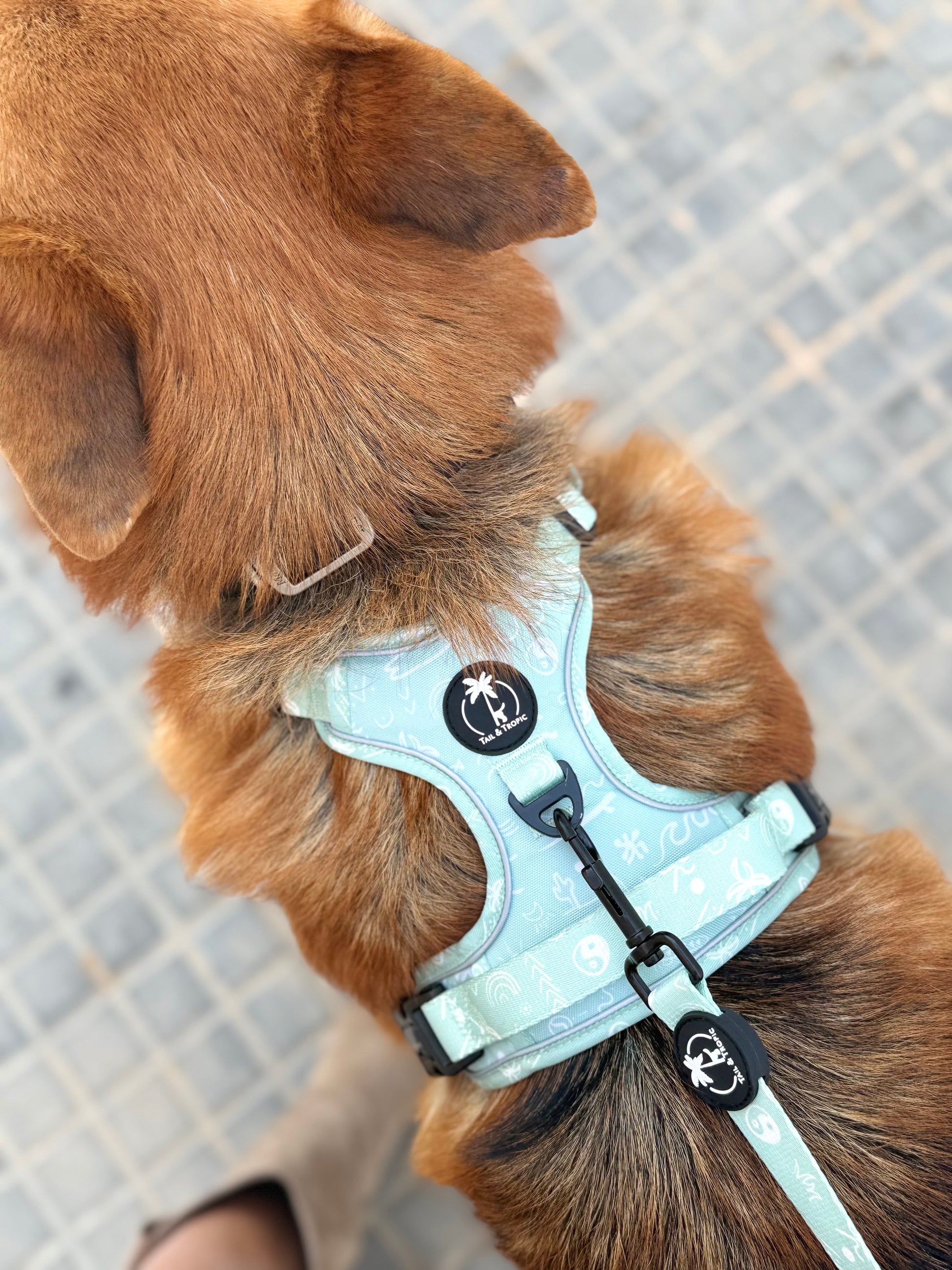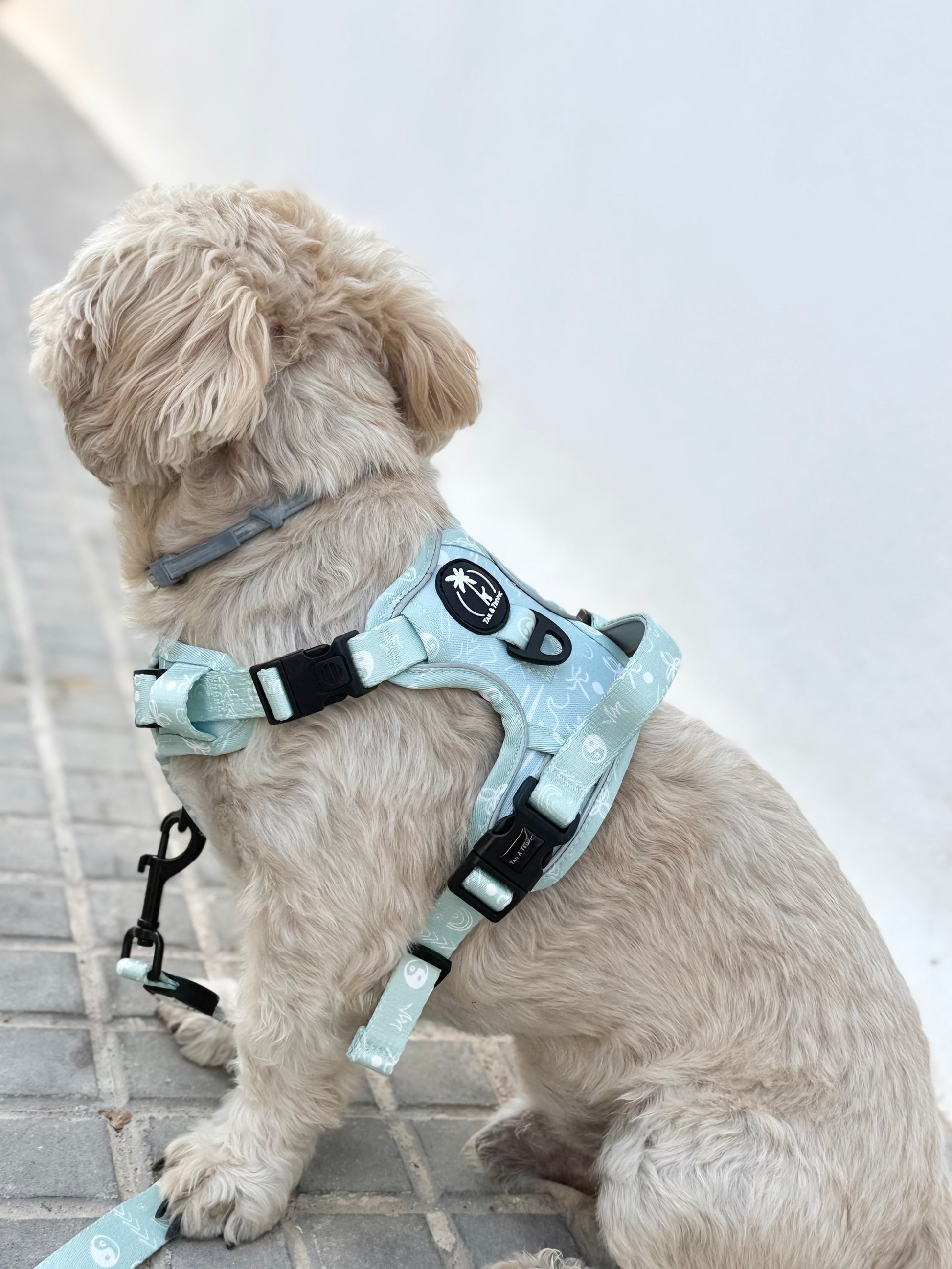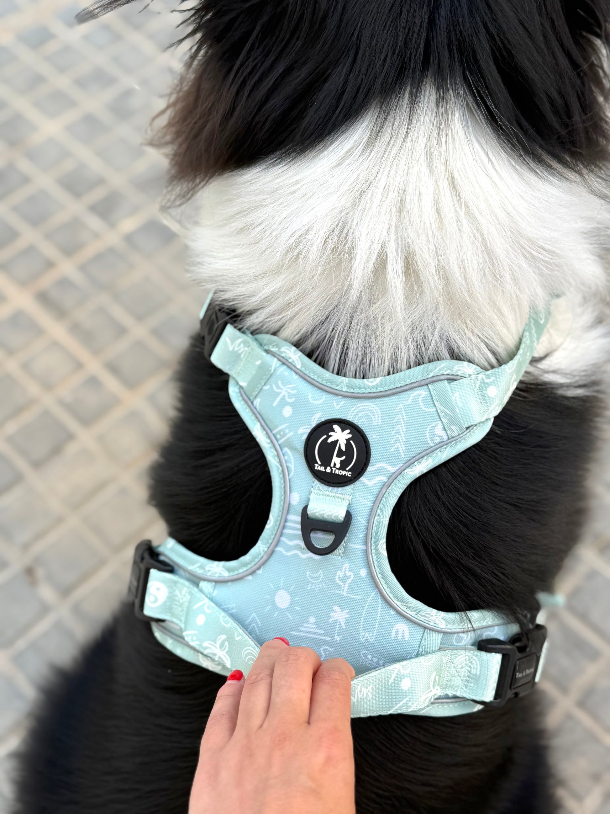 Ready for every adventure — from seaside strolls to forest hikes — the AURA All Terrain Harness is designed with comfort, control, and style in mind. Made especially for the coolest dogs, this harness blends durable construction with lightweight materials and a boho-inspired design in soft Mediterranean blue.