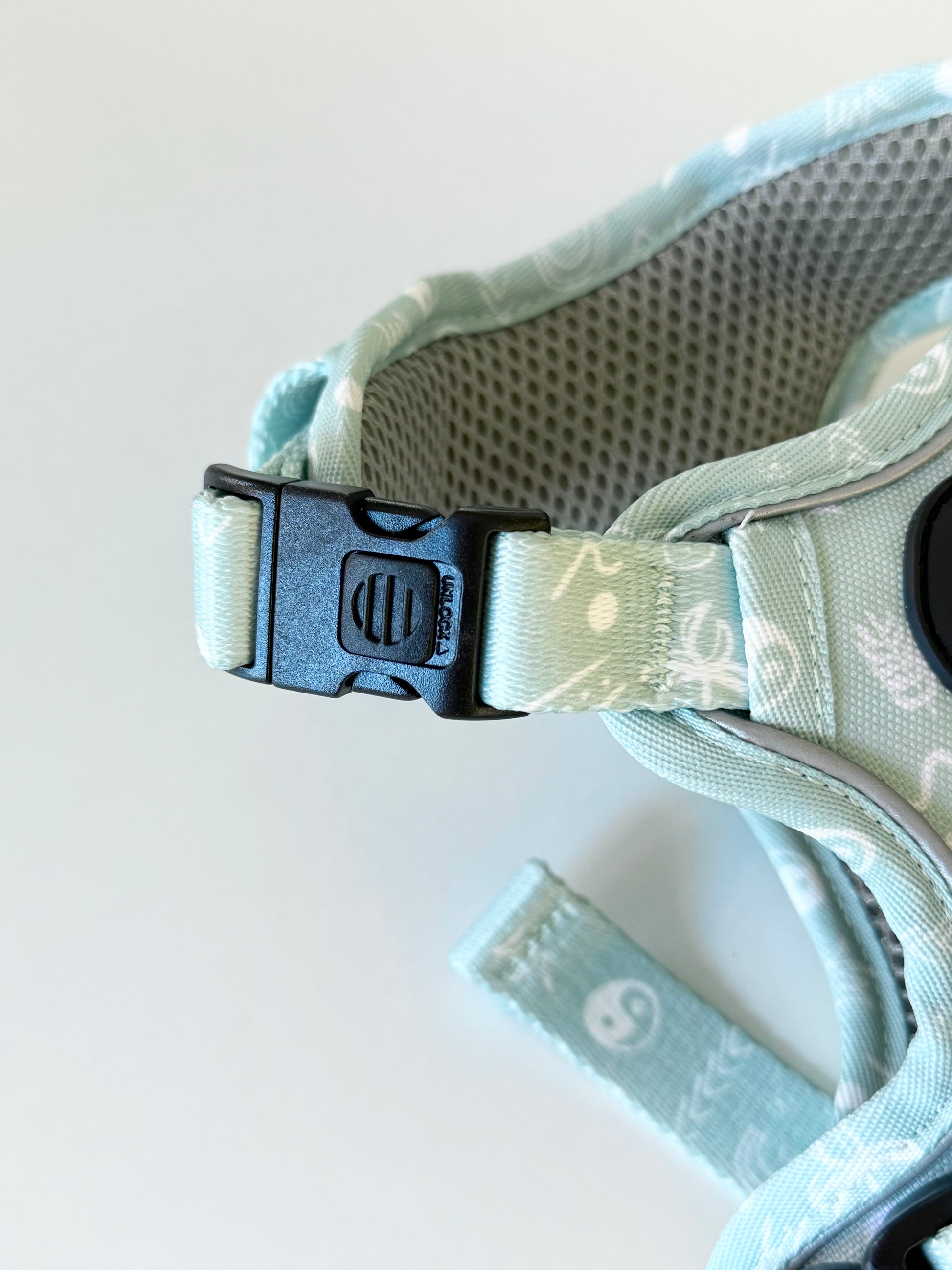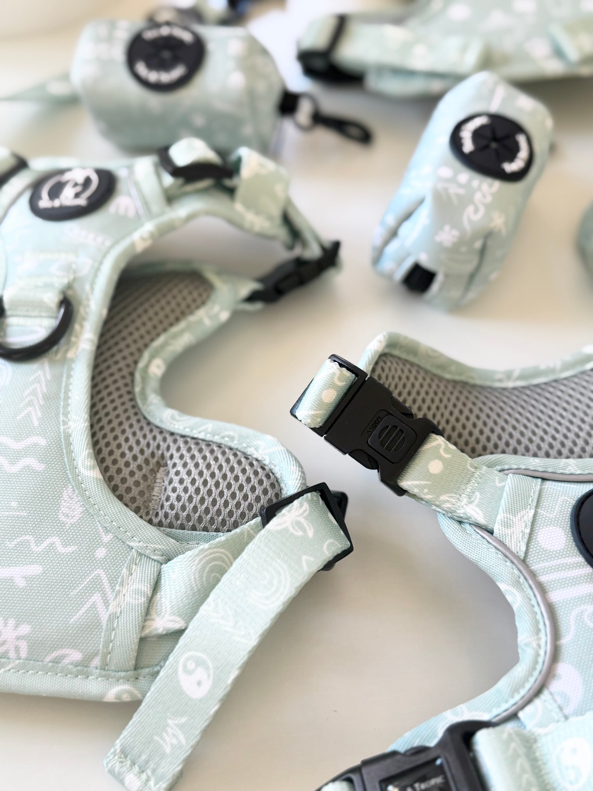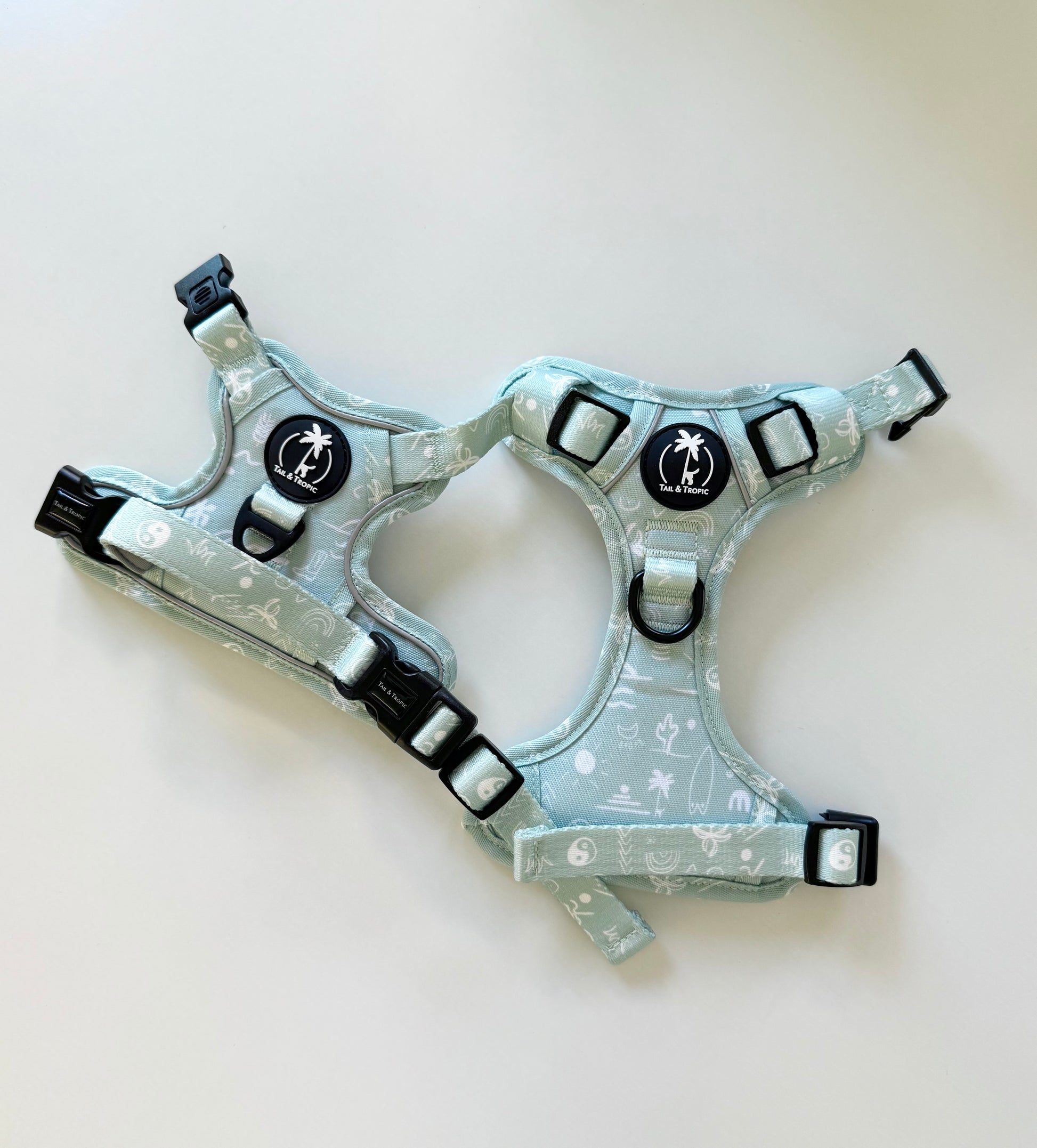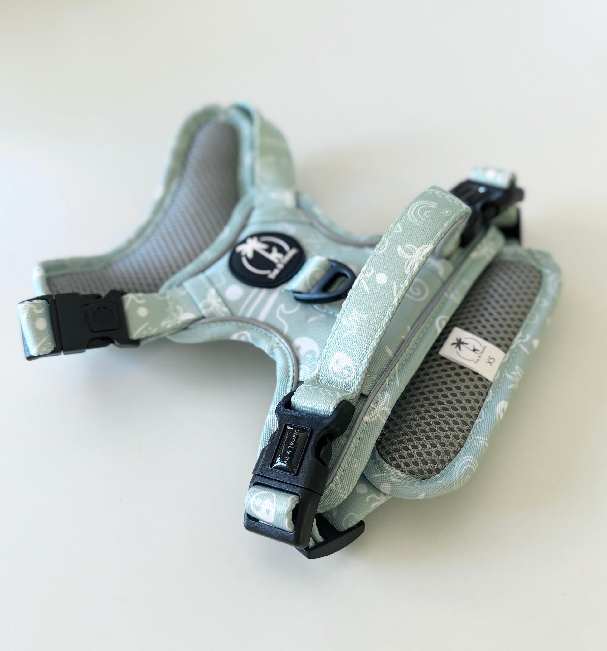 Ready for every adventure — from seaside strolls to forest hikes — the AURA All Terrain Harness is designed with comfort, control, and style in mind. Made especially for the coolest dogs, this harness blends durable construction with lightweight materials and a boho-inspired design in soft Mediterranean blue.