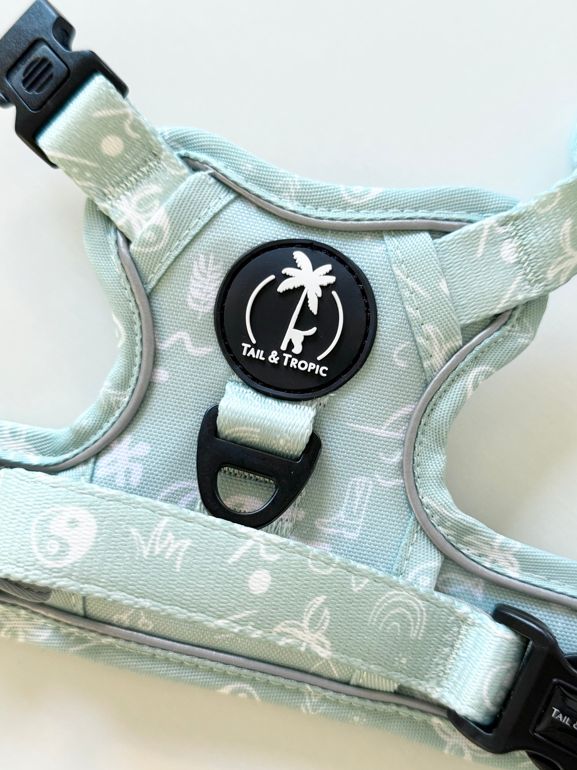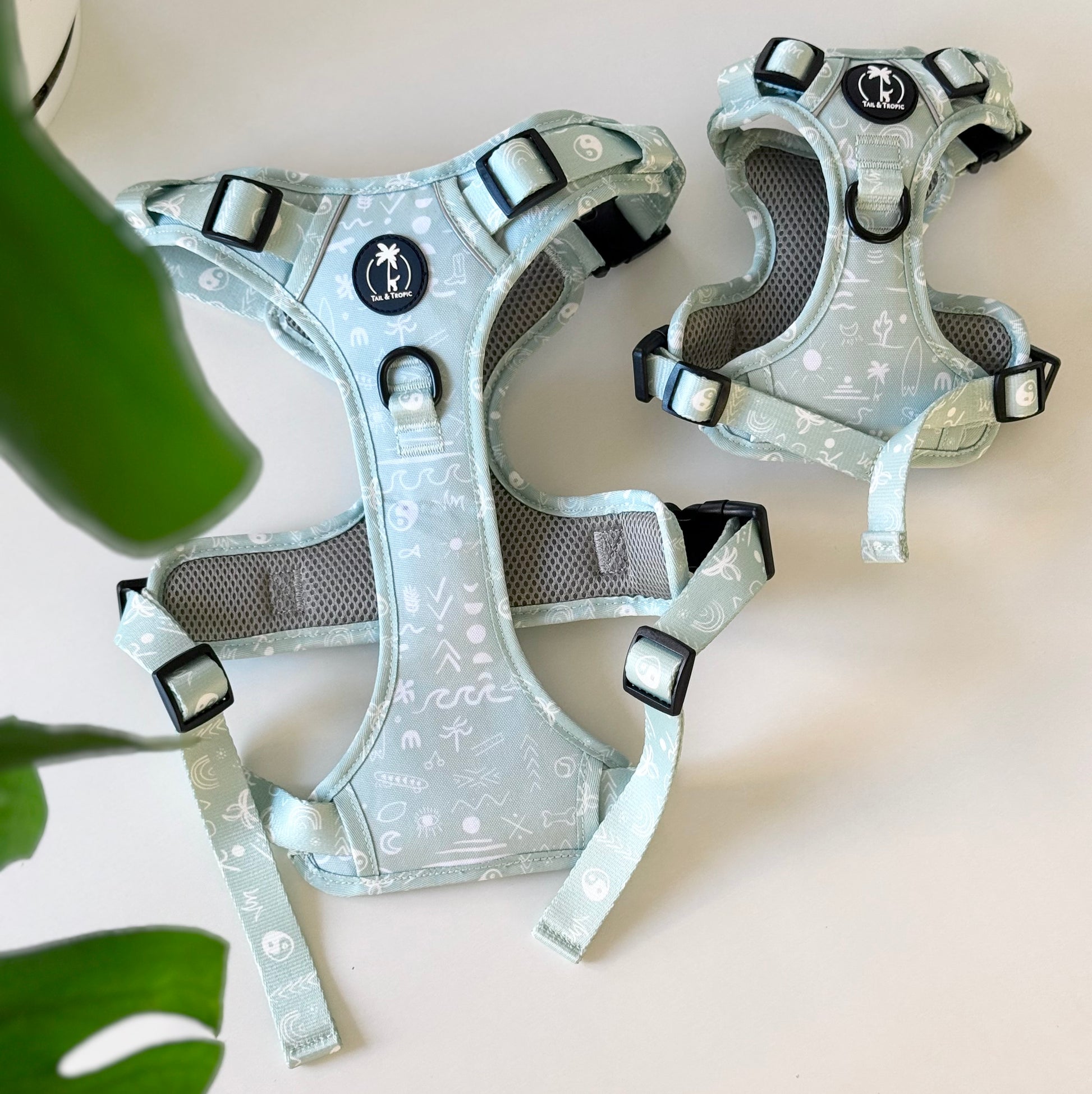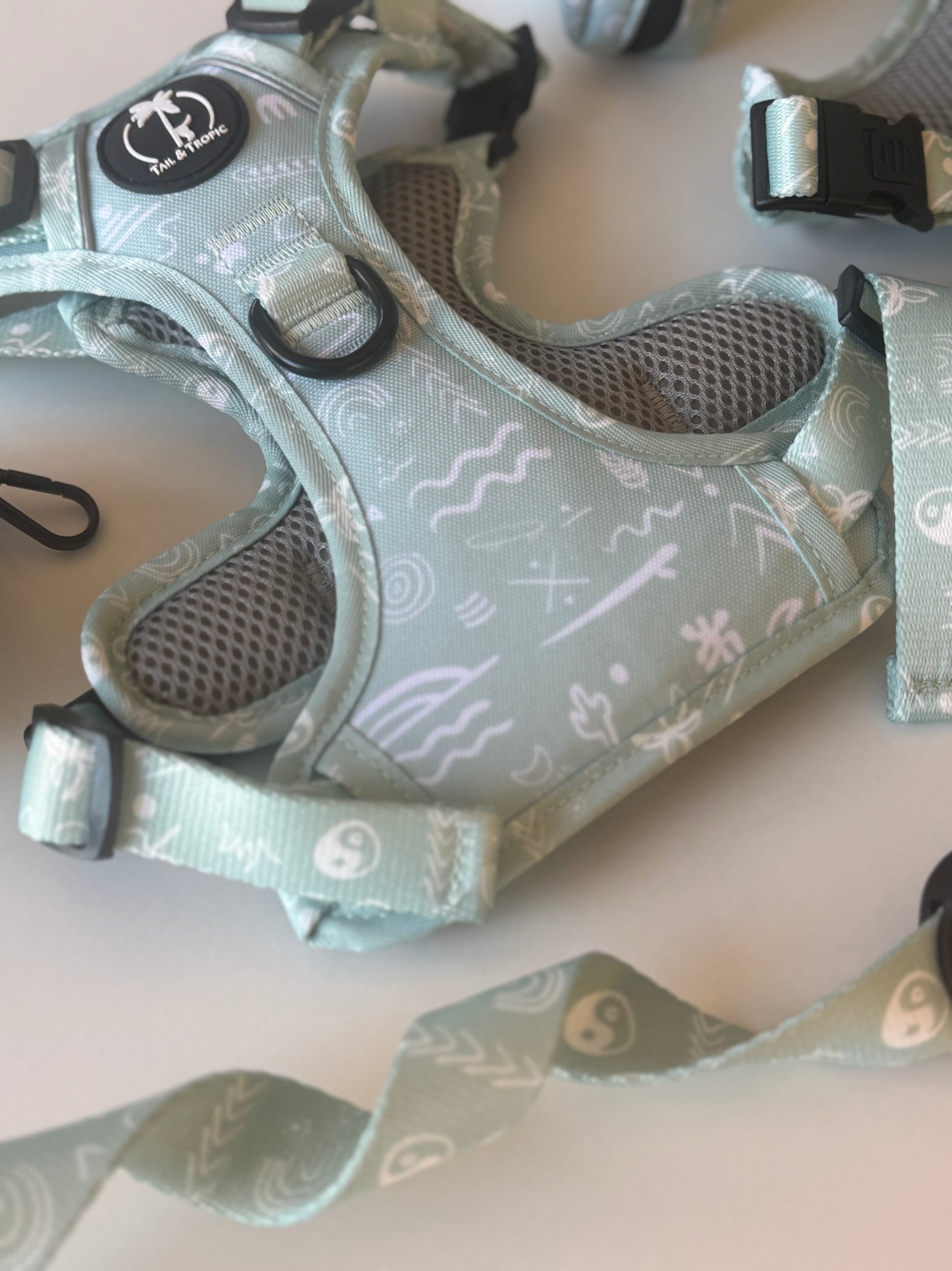 All Terrain Dog Harness – AURA Collection - Mediterranean Blue with Boho Spirit - Tail and Tropic Dog Harness 4x4