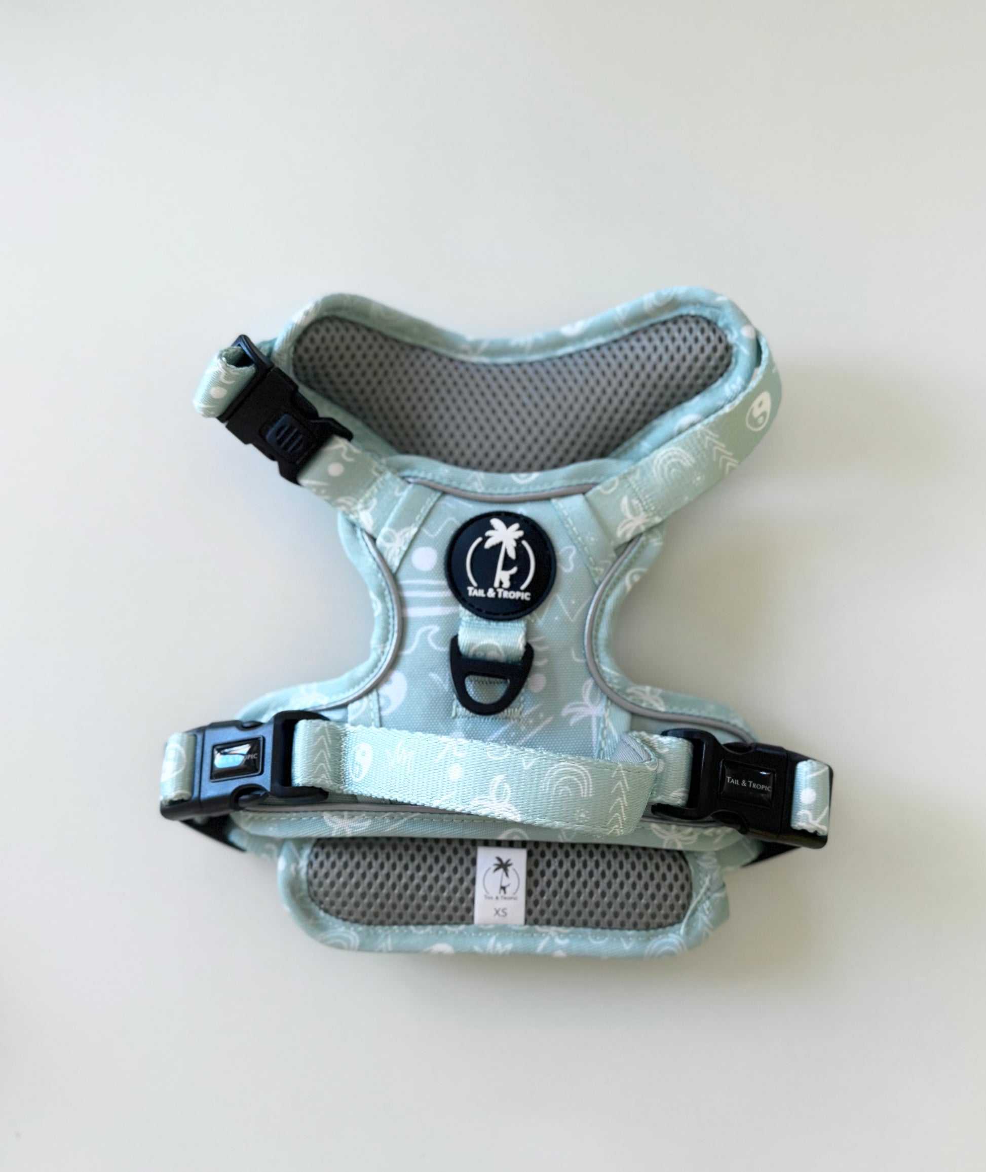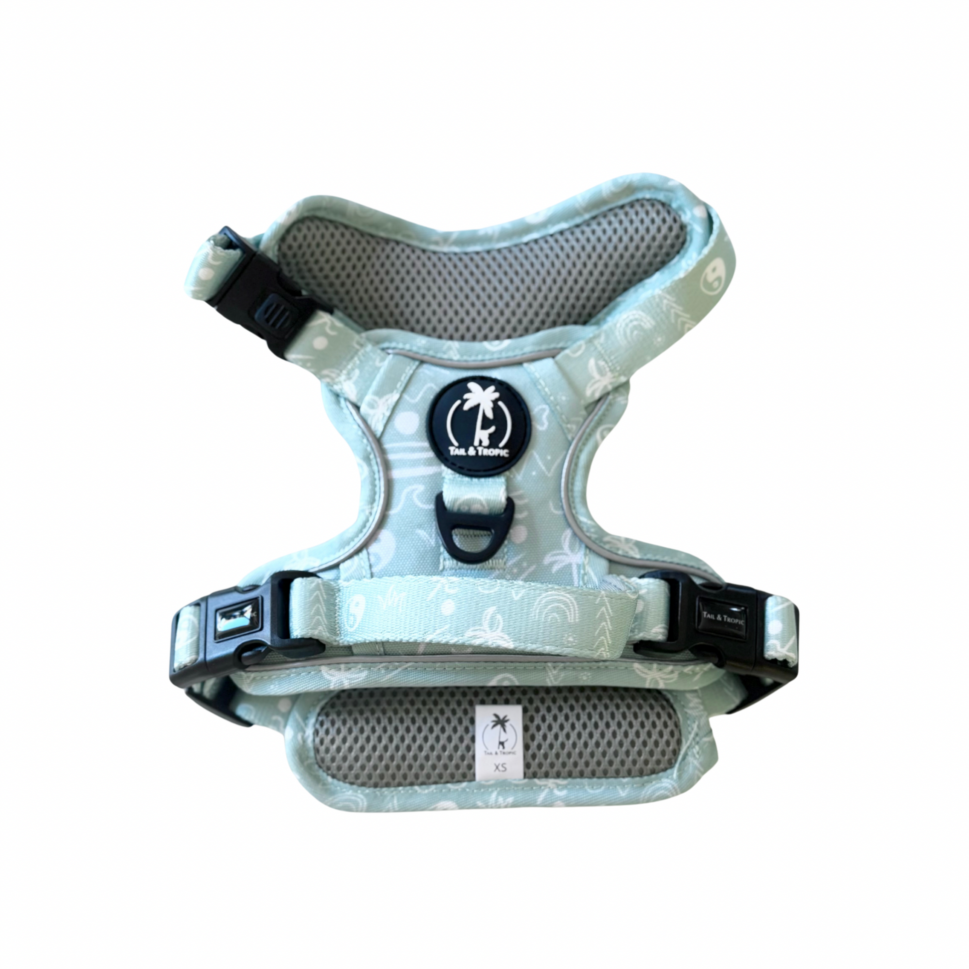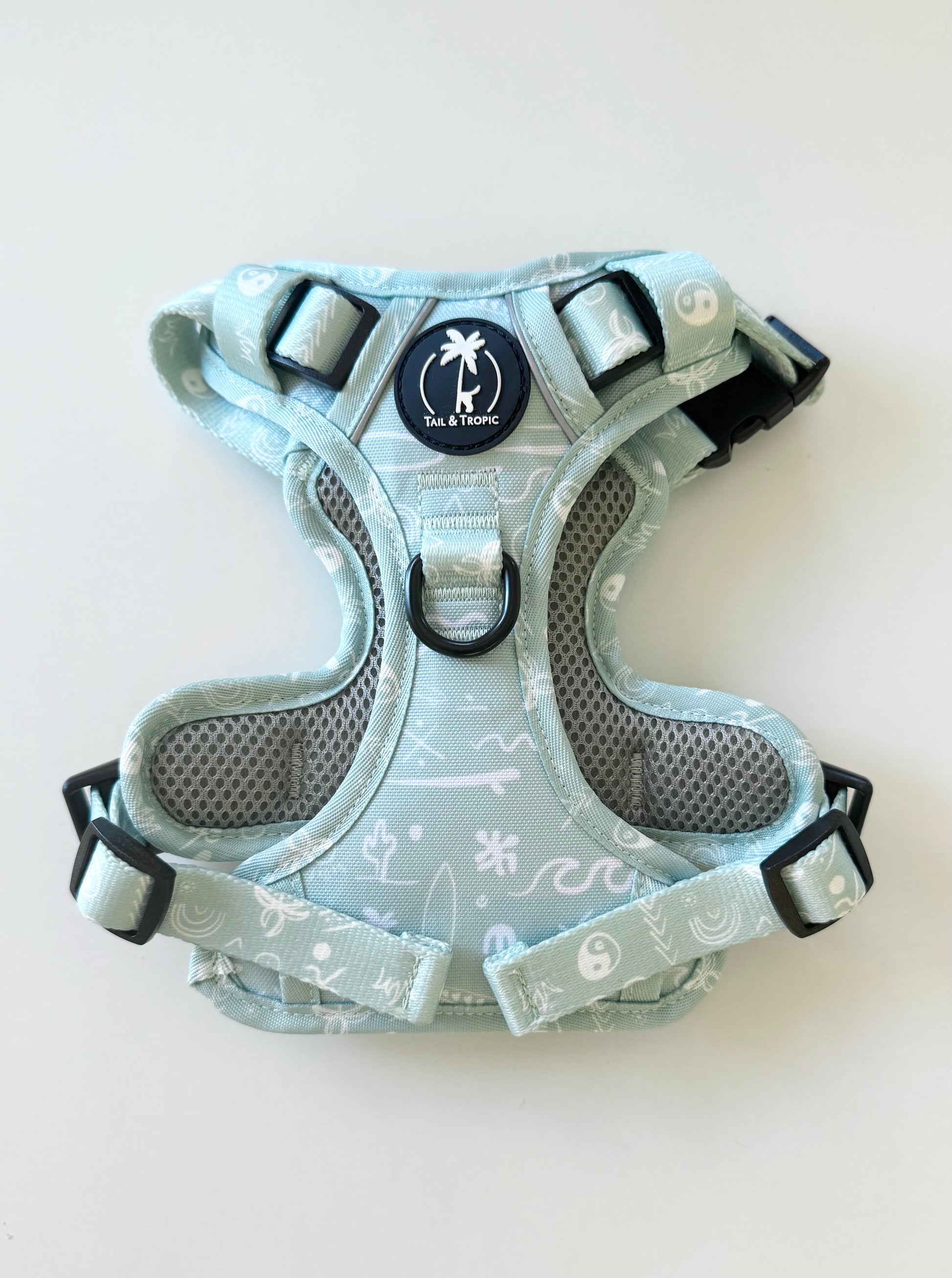 All Terrain Dog Harness – AURA Collection - Mediterranean Blue with Boho Spirit - Tail and Tropic Dog Harness 4x4