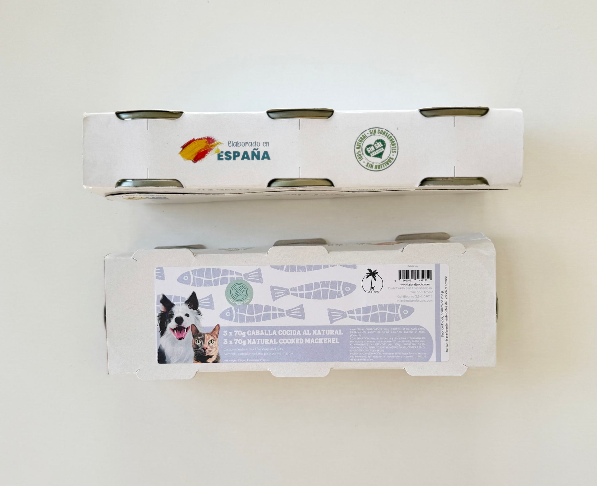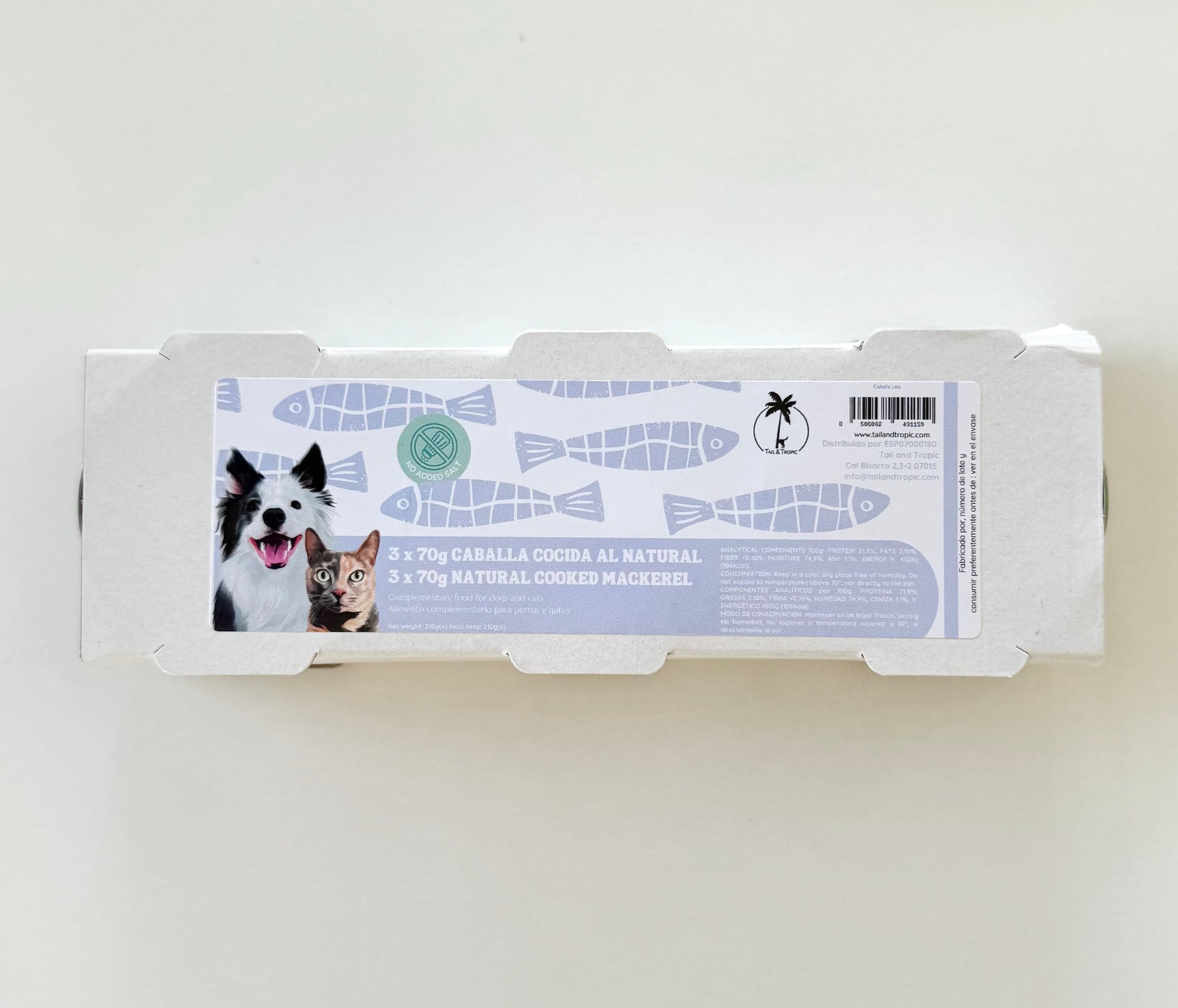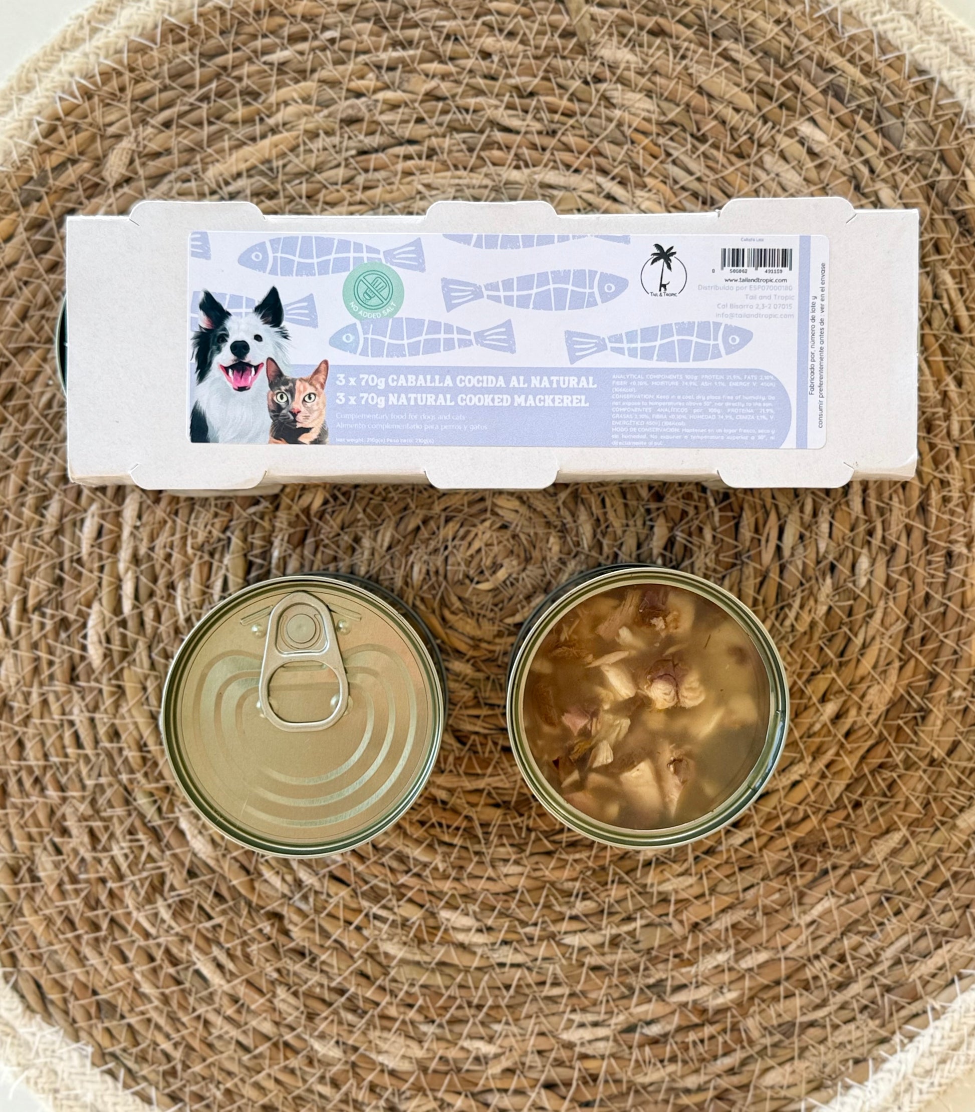NATURAL COOKED MACKEREL TINS - 3x70g tins for dogs & cats - Tail & Tropic natural pet food